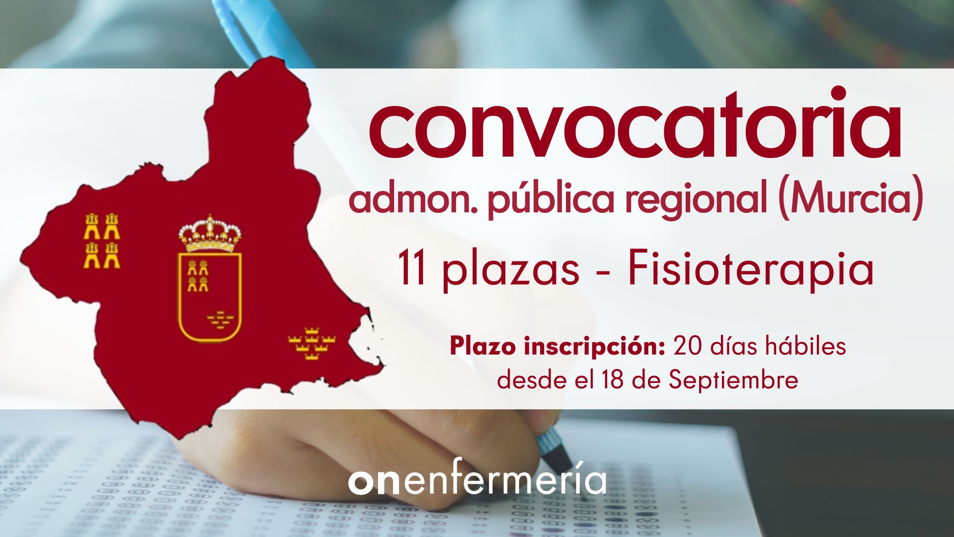 La Administración Pública de la Región de Murcia ha publicado una nueva convocatoria de empleo público para cubrir 11 plazas de Fisioterapeuta mediante el sistema de oposición libre.