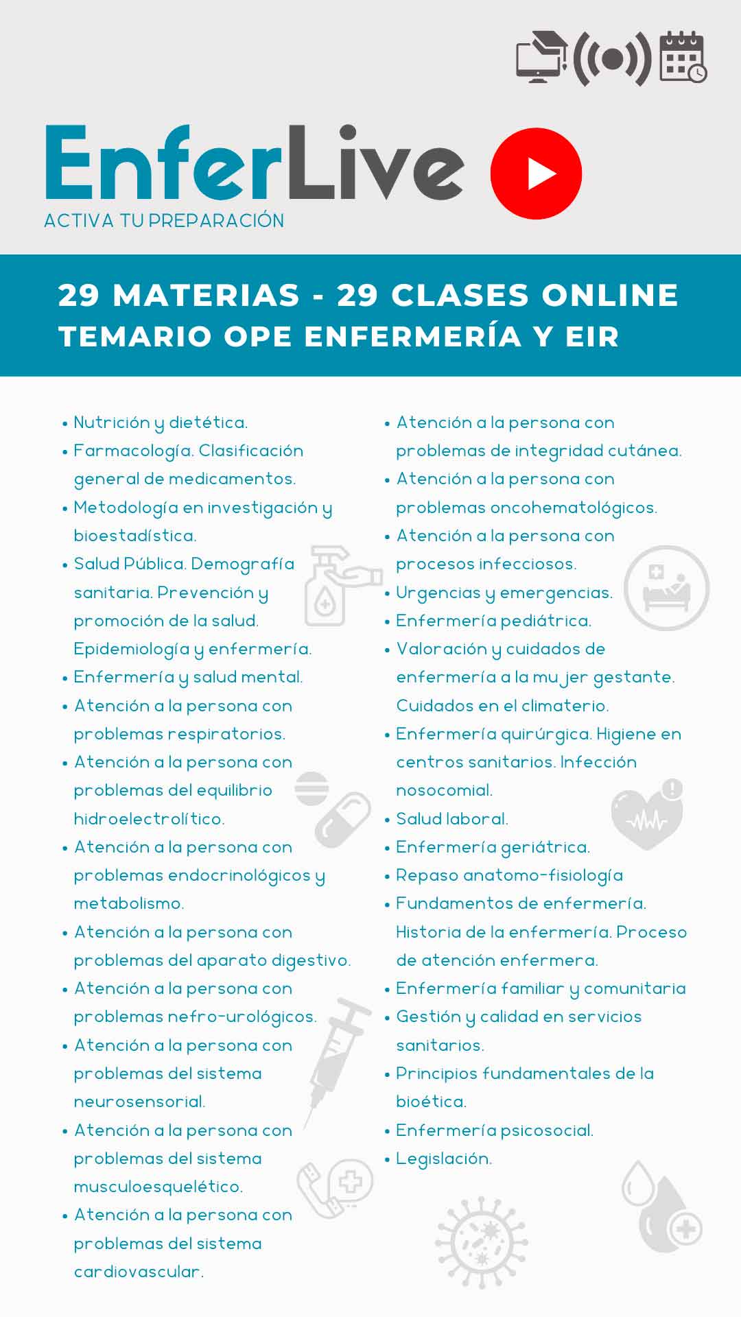 TEMARIO EIR Y OPE ENFERMERÍA EN 29 CLASES ONLINE