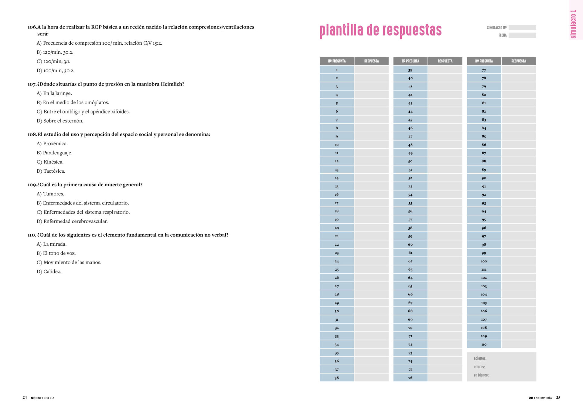 En tu espacio formativo online (www.on-enfermeria.com) accederás a todas las respuestas comentadas de los 10 simulacros. Esta es la parte más enriquecedora, puesto que te ayudará en la comprensión de contenido y afianzarás conceptos. Te facilitamos: